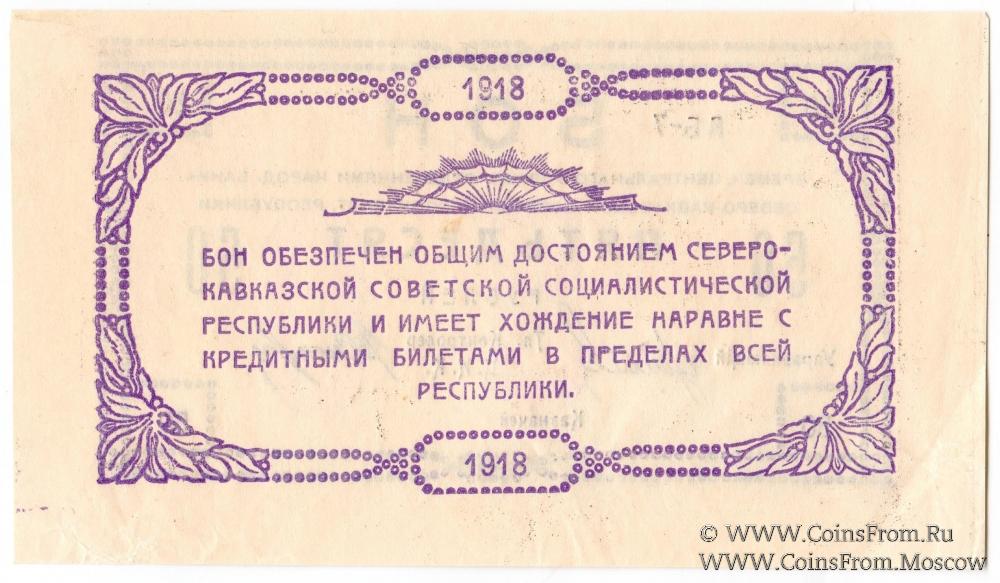 Бон 1918 г. Временное Центральное Управление Отделениями Народного Банка.