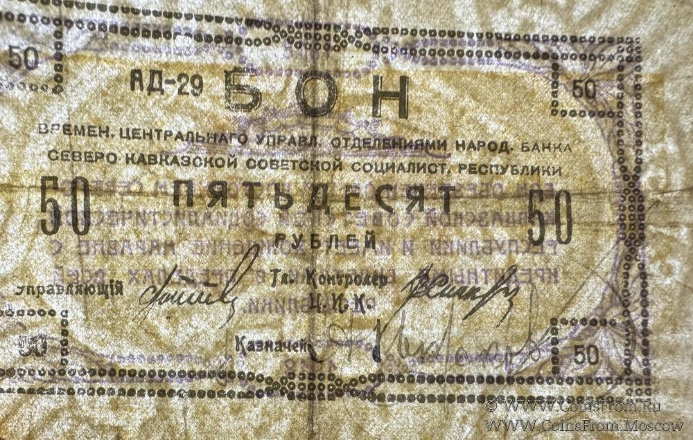 Бон 1918 г. Временное Центральное Управление Отделениями Народного Банка.