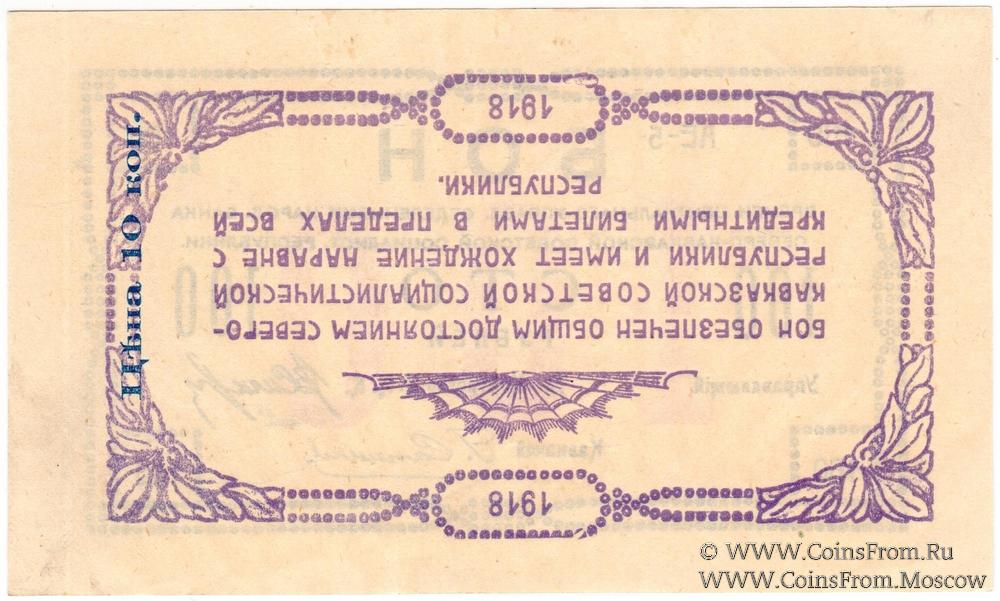 Бон 1918 г. БРАК: реверс перевернут, аверс без фона. Без подписи управляющего. Временное Центральное Управление Отделениями Народного Банка.