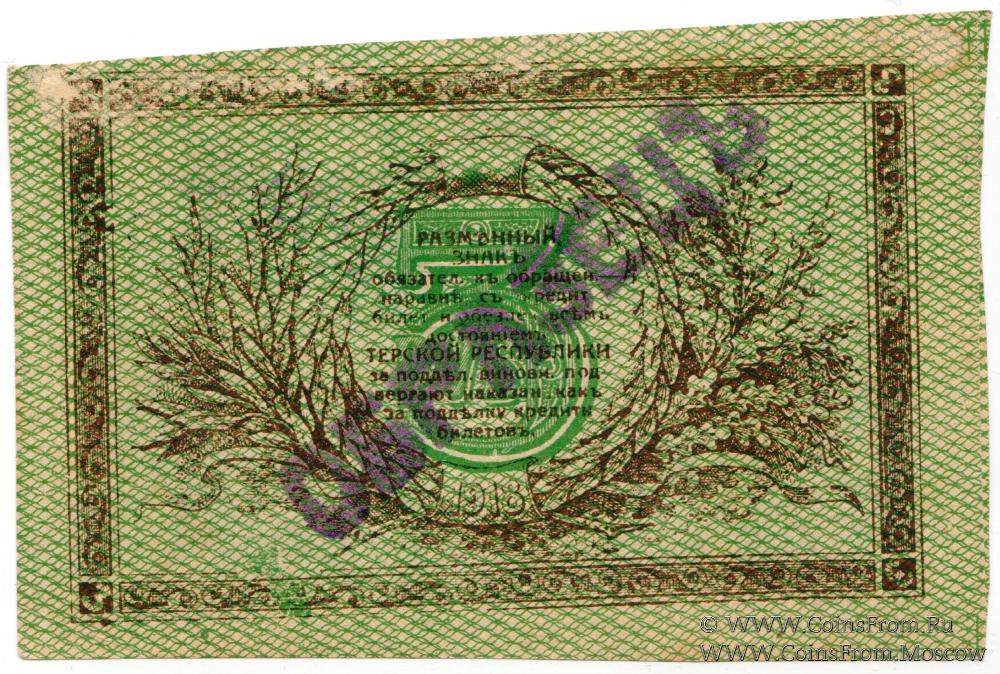5-й выпуск. Разменный знак 1918 г. Серия Б. Штамп "ОБРАЗЕЦ" по диагонали на аверсе и реверсе. Народный Банк.