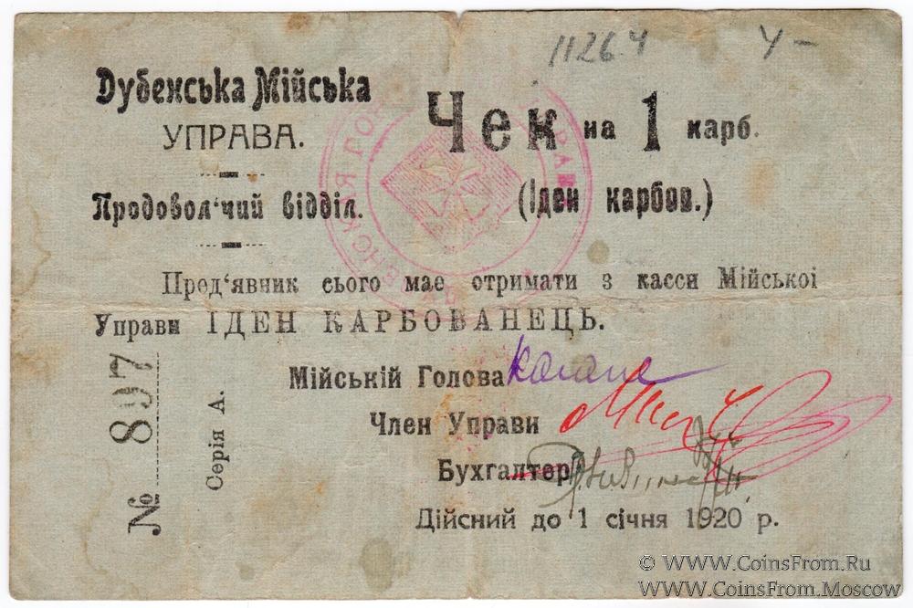 (Дубенська Мiйська Управа. Продовол'чий вiддiл.).