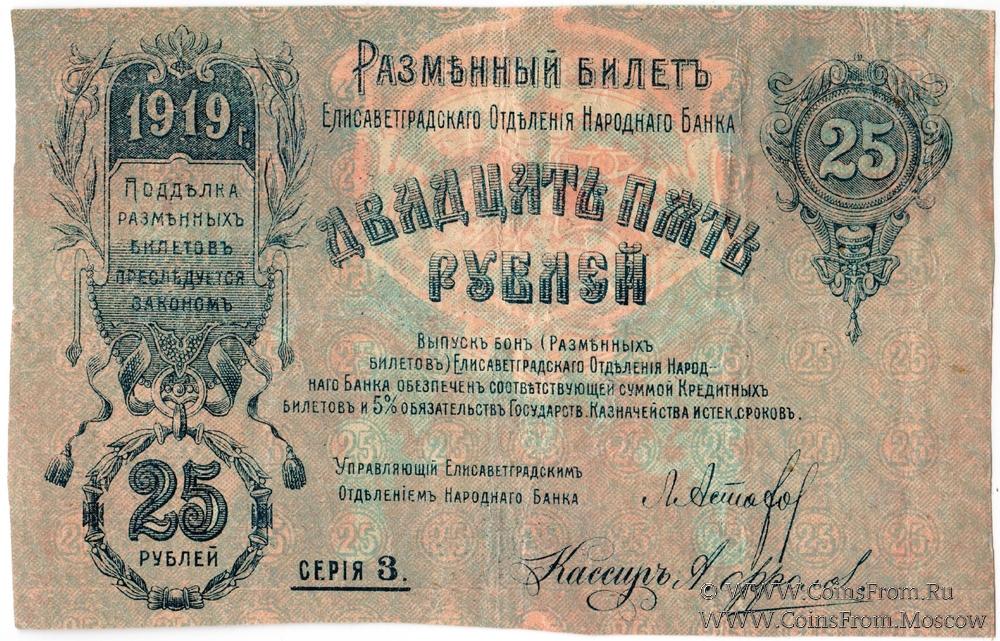 25 рублей 1919 г. (Елизаветград)