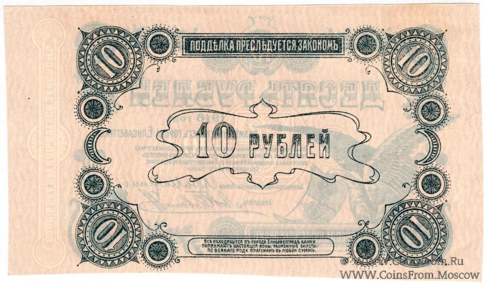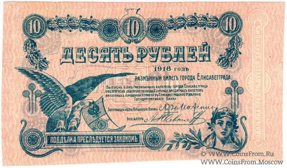 Разменный билет города Елизаветграда 1918 г. Фон розовый. БРАК: без желтого фона (бумага белая).