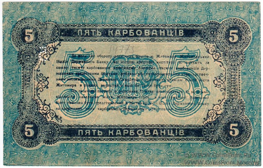 5 карбованцев 1918 г. (Житомир)