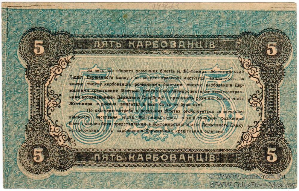 Разменный билет (Розмiнний бiлет) 1918 г. Номер 6-значный черный 4,5 мм, сдвиг фона. Городское самоуправление.