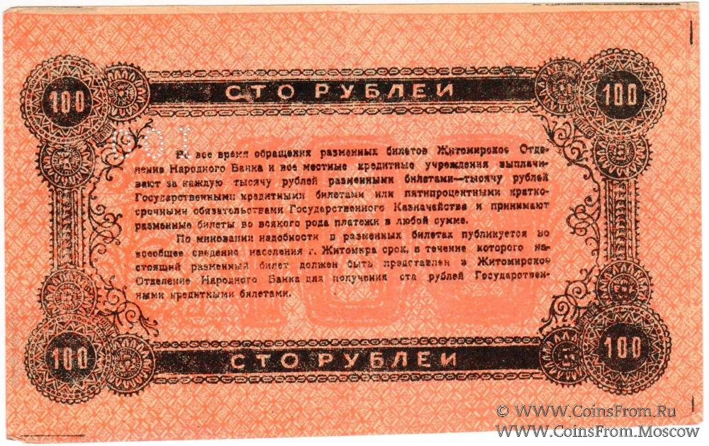 100 рублей 1919 г. (Житомир)