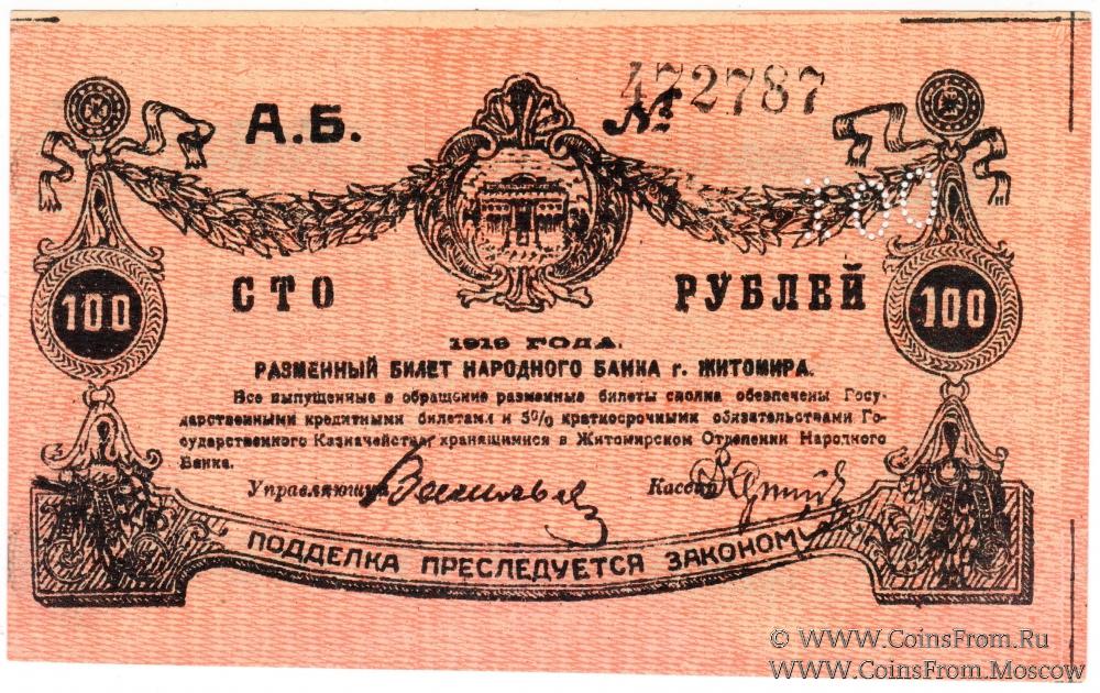 Разменный билет Народного Банка 1919 г. БРАК обрезки: сдвиг рисунка на аверсе и реверсе.