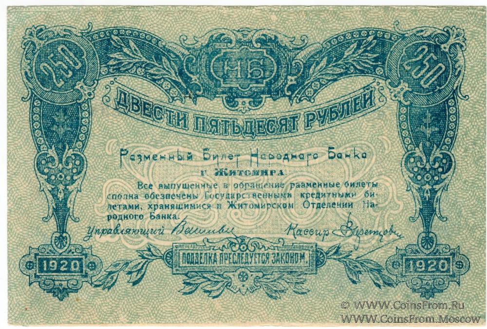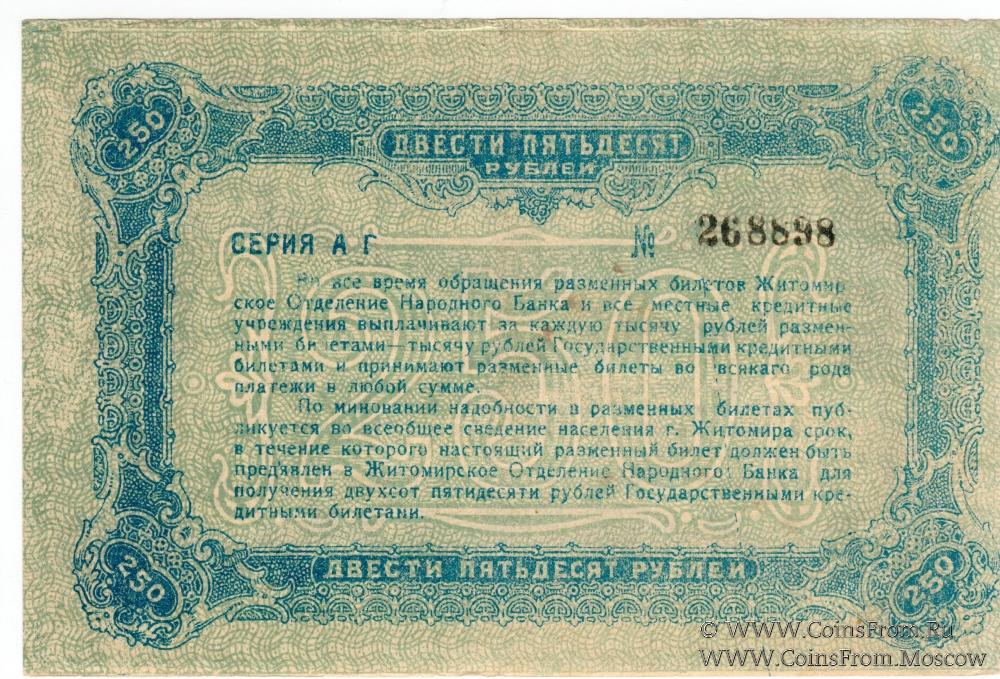 Разменный билет Народного Банка 1920 г. Номер 6-значный черный 4,5 мм, бумага тонкая. Серия АГ. Народный Банк.