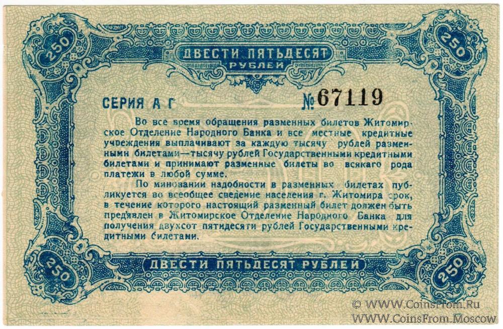 Разменный билет Народного Банка 1920 г. Номер 5-значный черный 5 мм, фон светлый, бумага тонкая. Серия АГ. Народный Банк.