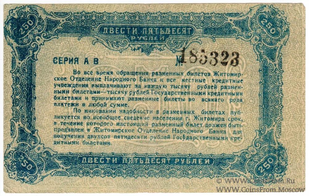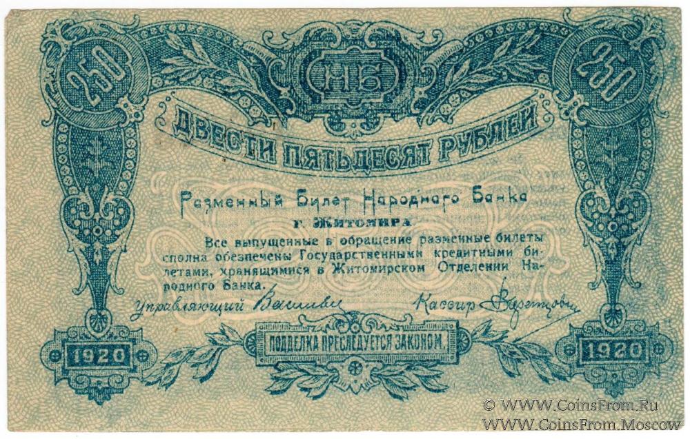 Разменный билет Народного Банка 1920 г. Номер 6-значный черный 7 мм. Серия АВ. Народный Банк.
