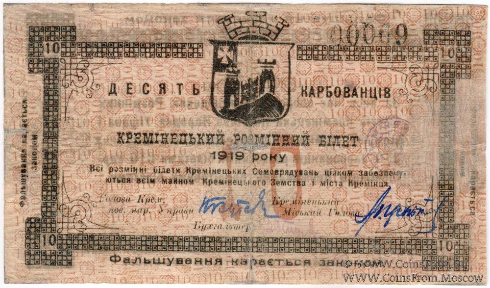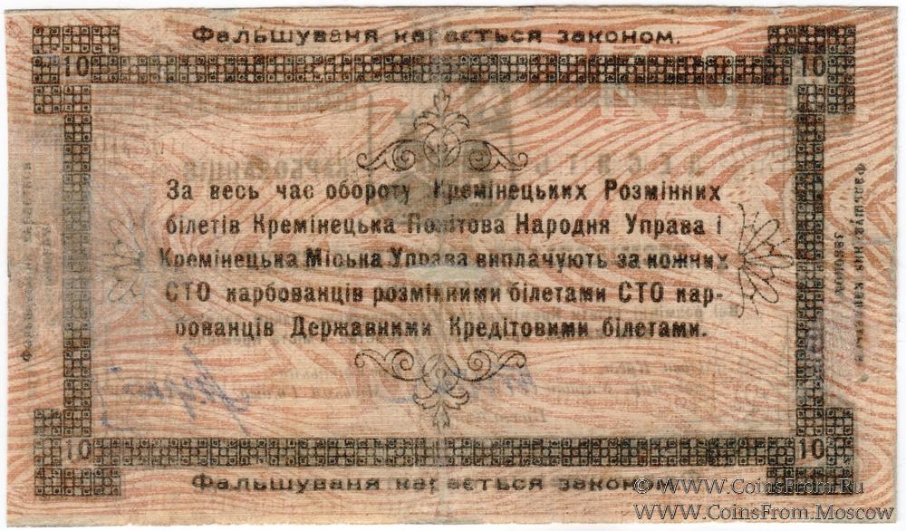 10 карбованцев 1919 г. (Кременец)
