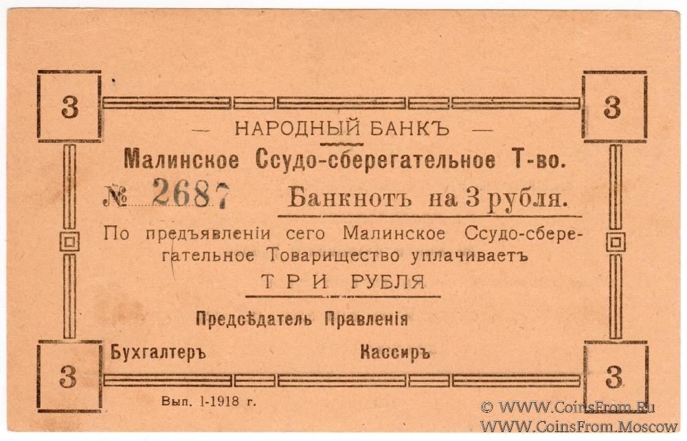 Банкнотъ 1918 г. Выпуск 1. Бланк без печати, без подписей. С опечаткой на реверсе: "...твкущiе...".