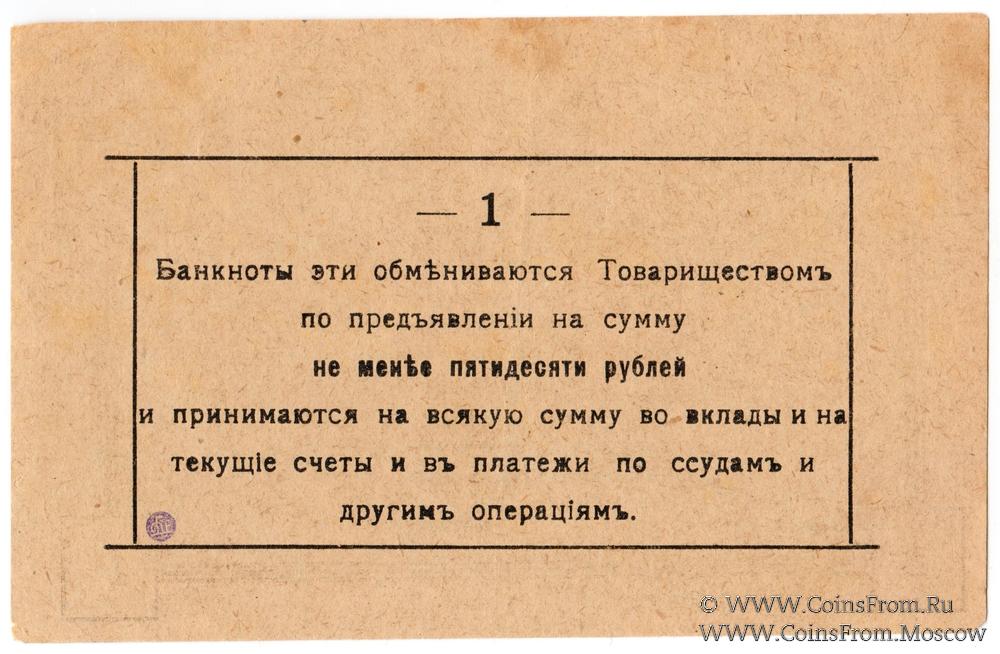Банкнотъ 1918 г. Выпуск 1. Рамка - вариант 3. Малинское Ссудо-сберегательное Товарищество. Народный Банк.
