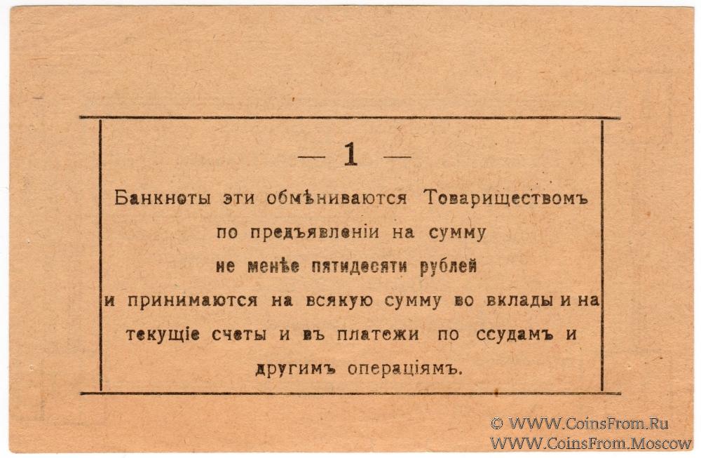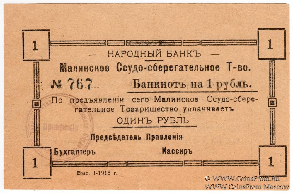 Банкнотъ 1918 г. Выпуск 1. Бланк с печатью Правления, без подписей. Рамка - вариант 1. Малинское Ссудо-сберегательное Товарищество. Народный Банк.