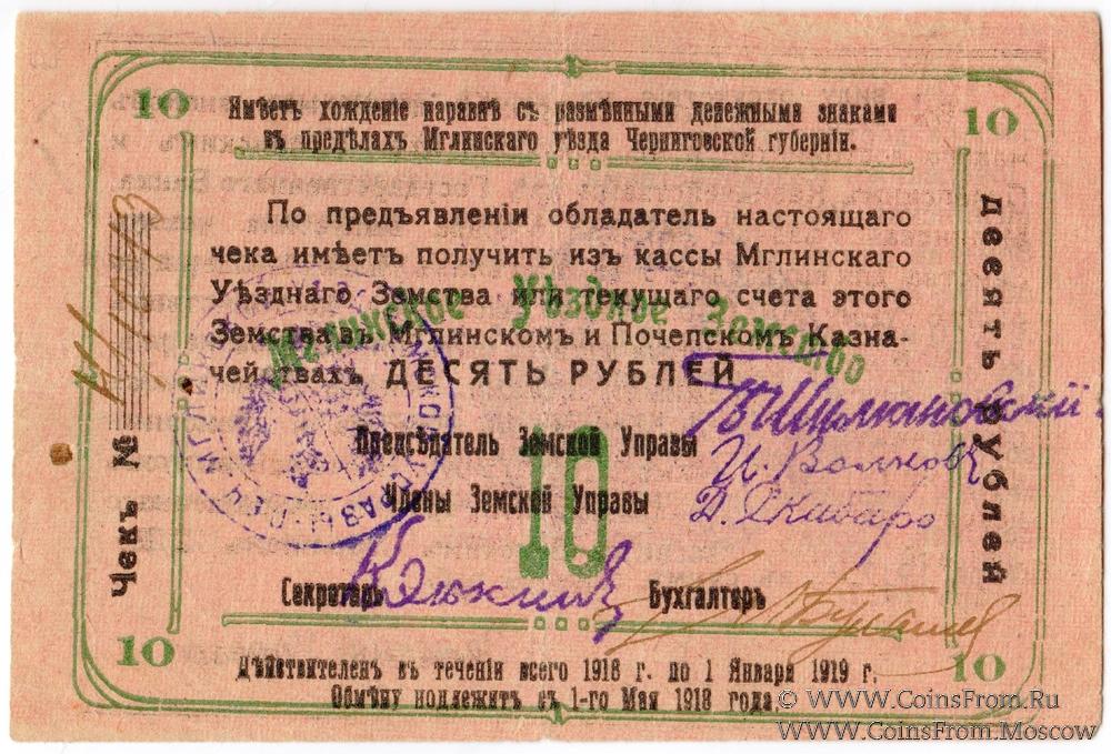На аверсе печать: Орёл (в центре) / «ПЕЧ. МГЛИНСКОЙ УЪЗД. ЗЕМСКОЙ УПРАВЫ» (по кругу).
