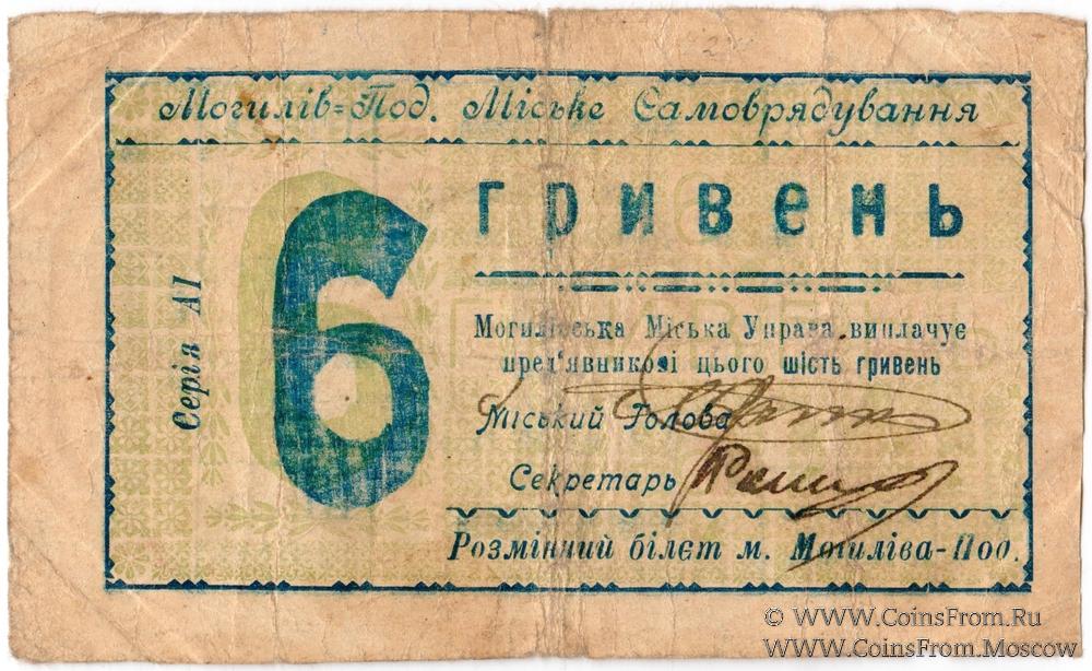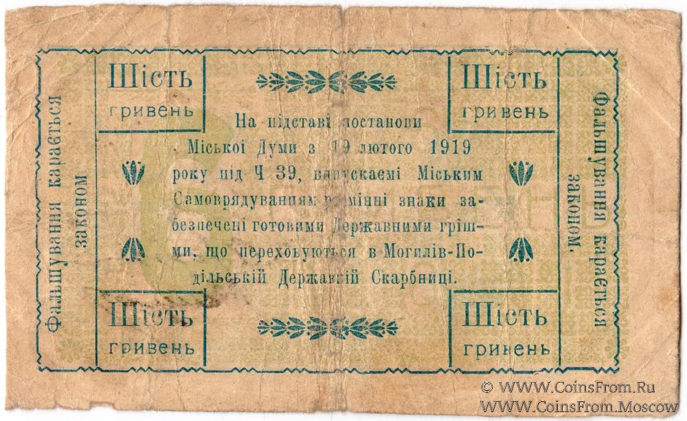 6 гривен 1919 г. (Могилев-Подольский)