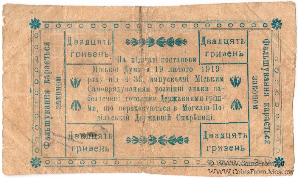 Разменный билет (Розмiнний бiлет). Выпуск 19.02.1919 г. Серия Е. Городское Самоуправление (Miське Самоврядування).