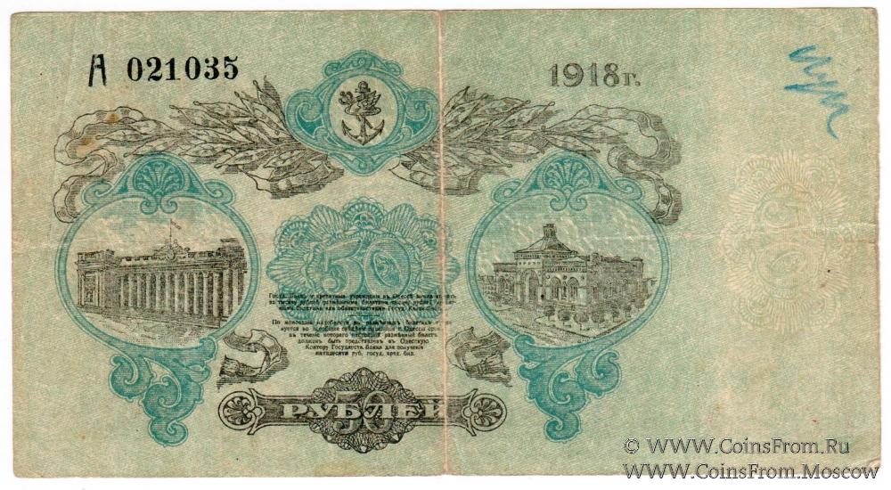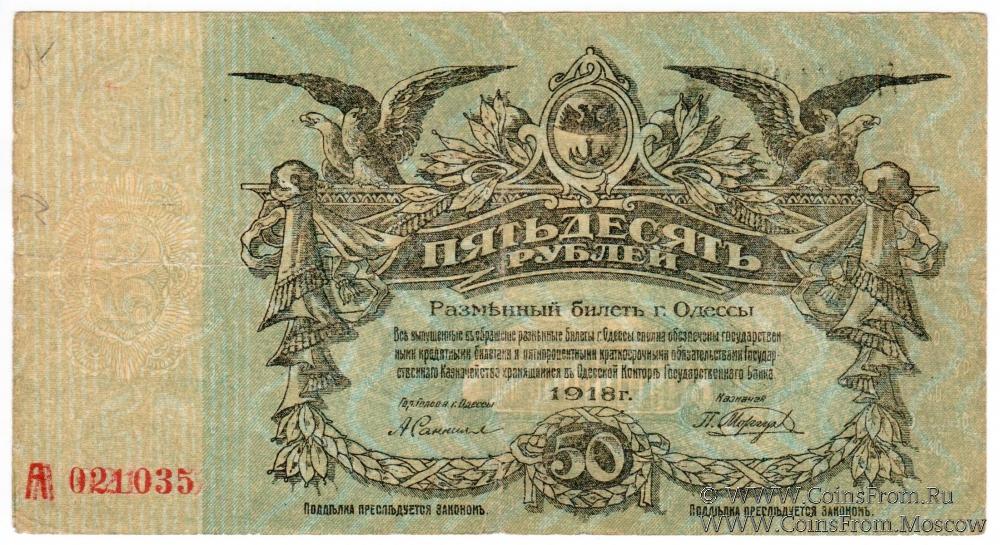 Разменный билет г. Одессы 1918 г. Серия А. БРАК нумератора: двойная печать номера на аверсе. Городское Самоуправление.