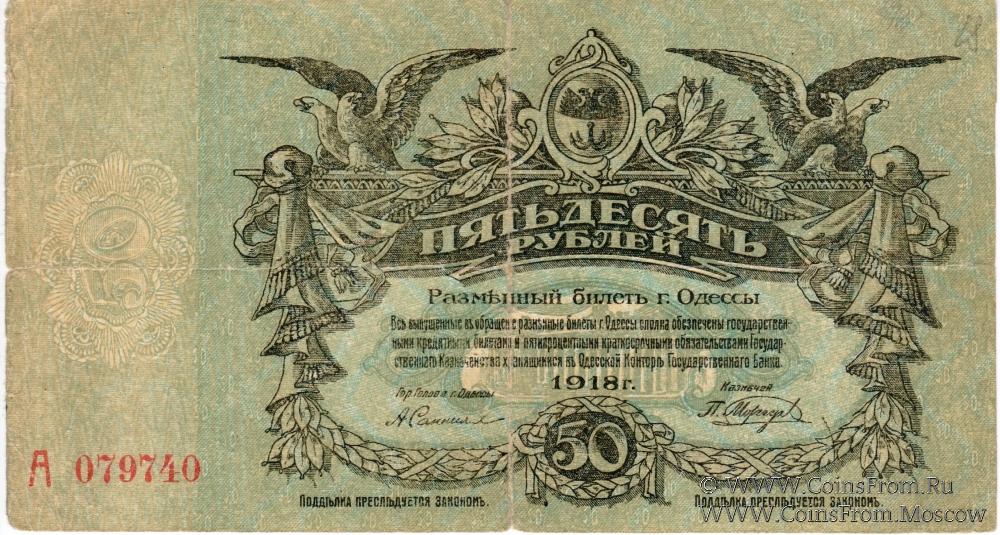 Разменный билет г. Одессы 1918 г. Серия А. Городское Самоуправление.
