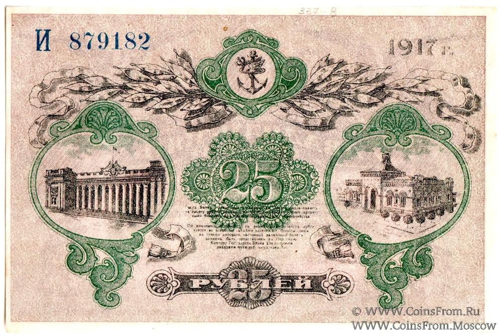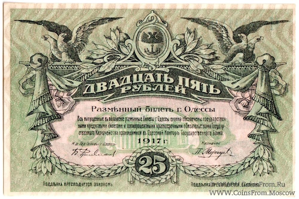 Разменный билет г. Одессы 1917 г. Серия и номер синие на реверсе.