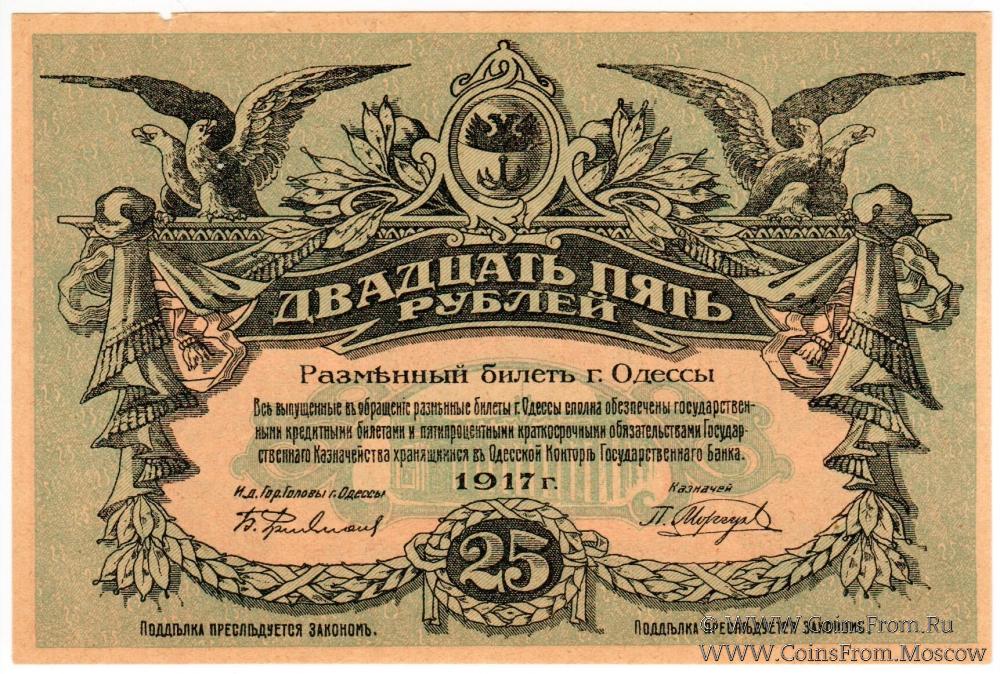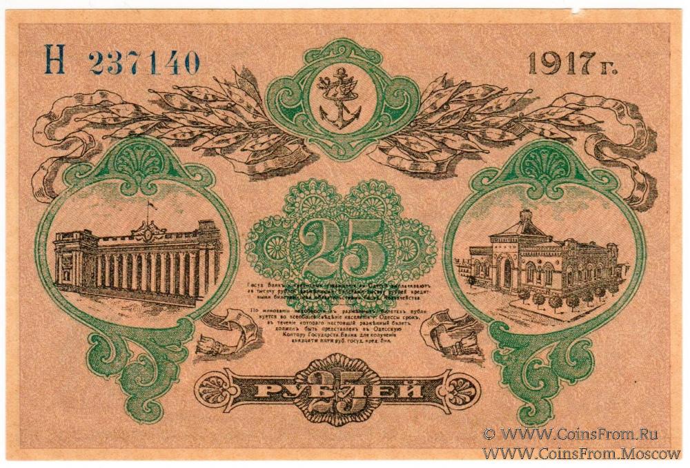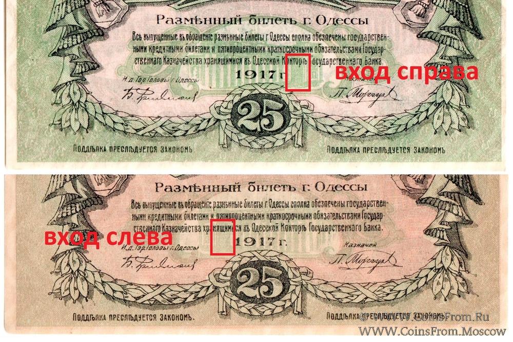 Разменный билет г. Одессы 1917 г. Серия и номер синие на реверсе.