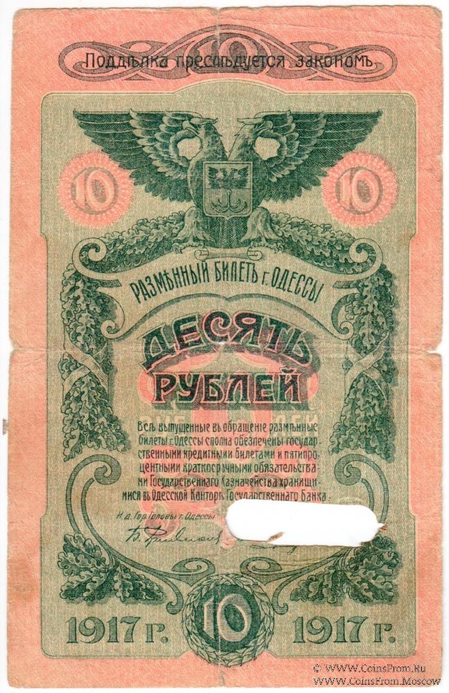 10 рублей 1917 г. (Одесса)