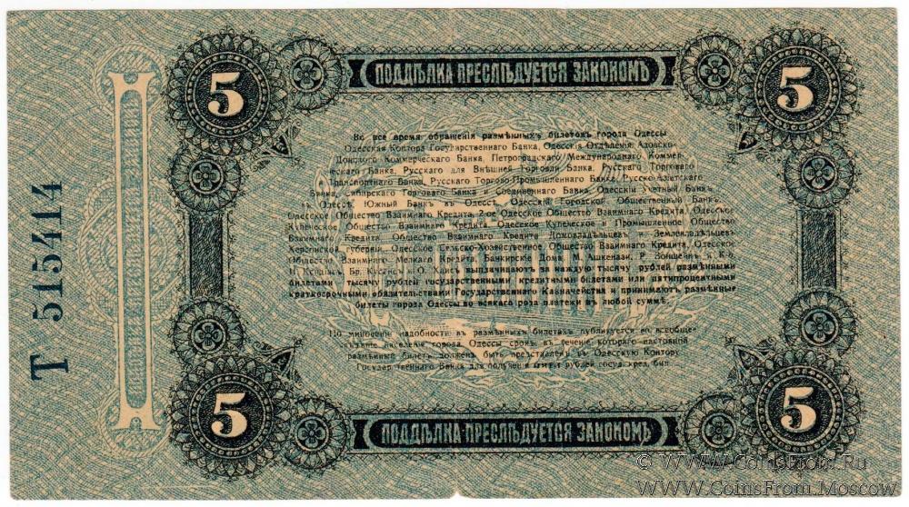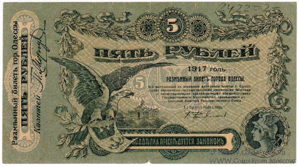 Разменный билет г.Одессы 1917 г. Номер синий с серией. Бумага желтая. Городское Самоуправление.