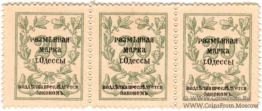 Разменная марка г. Одессы без даты (1917 г. ). Сцепка из 3-х марок. Городское Самоуправление.