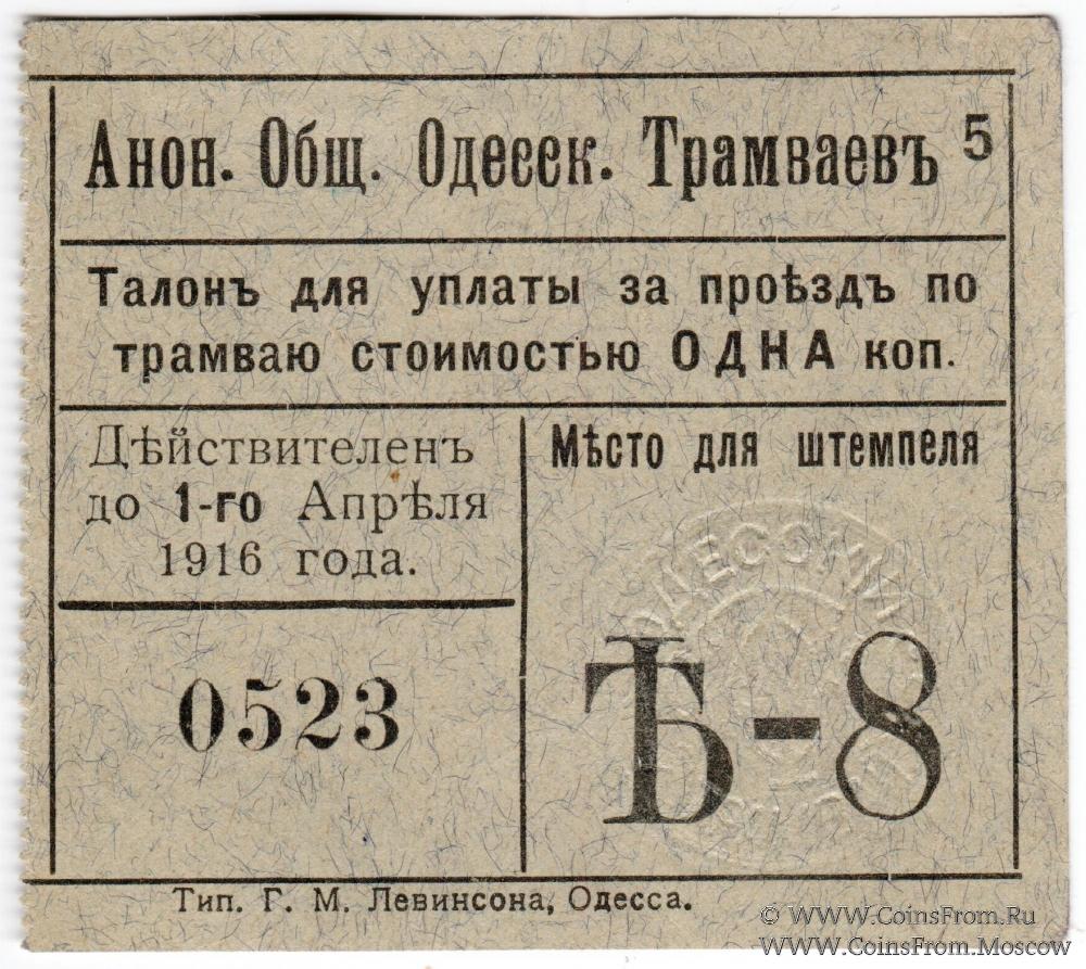 Талон. Печать тиснением. Анонимное Общество Одесских Трамваев.