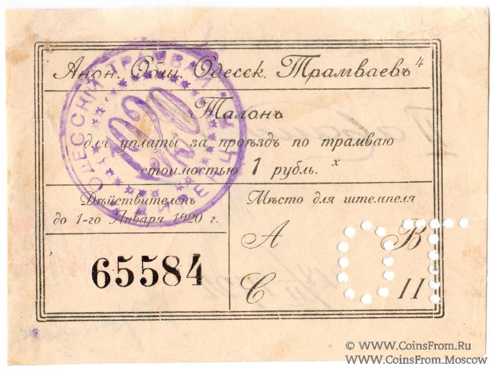 Печать куглая: "1920" (по центру) / "ДИРЕКЦИЯ * ОДЕССКИЙ ТРАМВАЙ *" (по кругу)