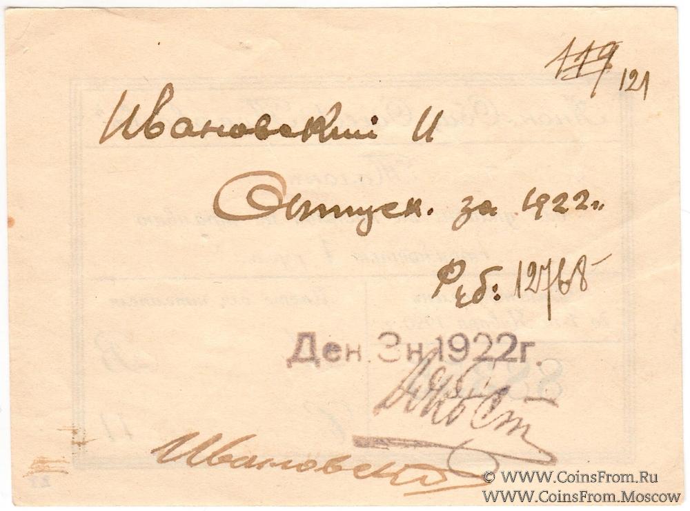 Надписи о выплатах за 1922 с подписями ответственных лиц и штампом "Ден.Зн.1922г." на реверсе (вариант 3).