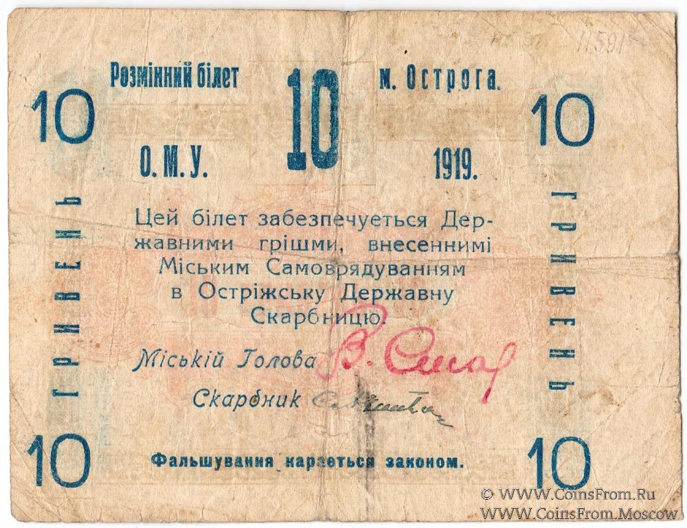 Разменный билет (розмiнний бiлет) 1919 г. Острожское Городское Самоуправление (Острожські Мiське Самоврядування).