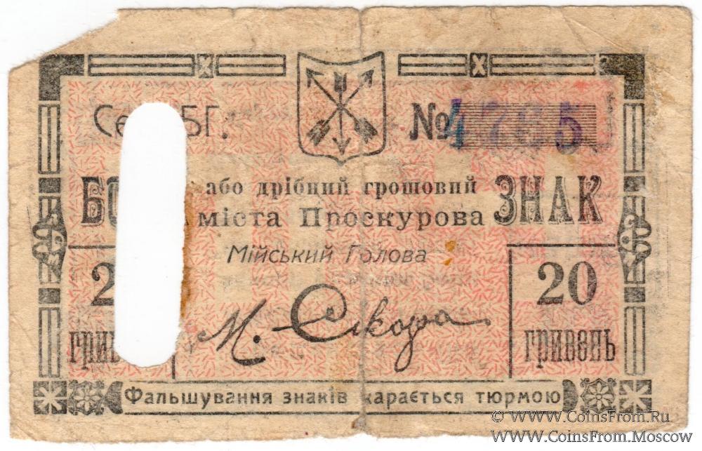Бона (действительна до 01.10.1919 г.). Серия БГ. Гашение. Реверс перевернут. Проскуровский Городской Банк (Проскурiвський Мiйський Банк).