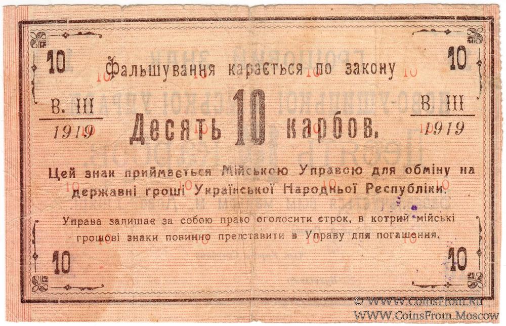10 карбованцев 1919 г. (Новая Ушица)
