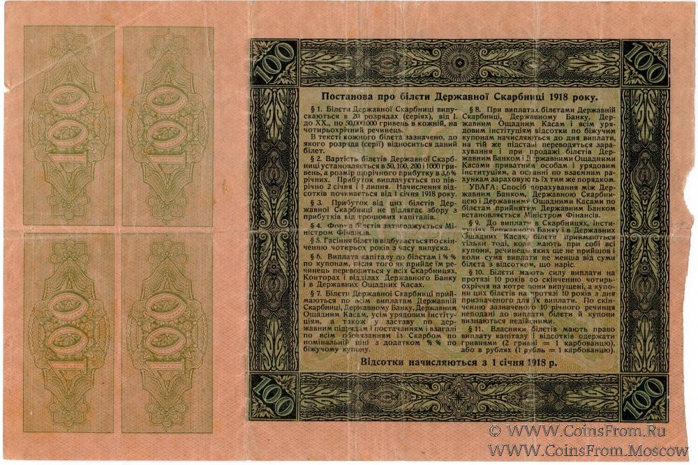 Выпуск 1. Серия II. 3,6% Билет Государственного Казначейства (Бiлет Державноi Скарбницi) 1918 г. с (4) купонами.