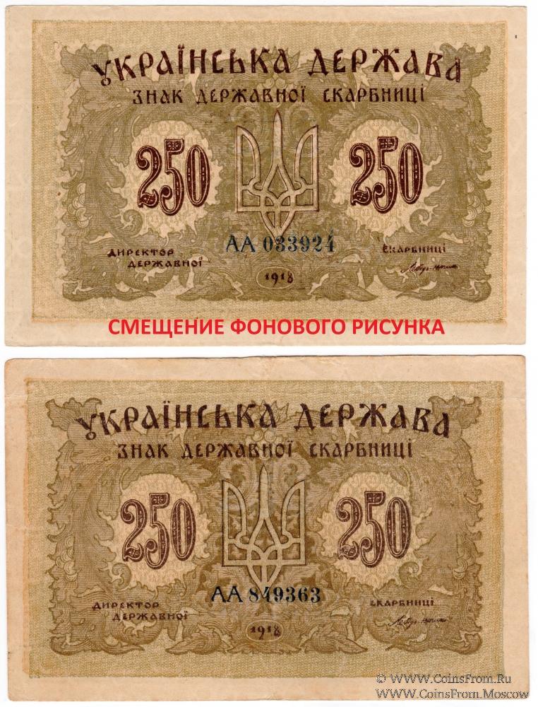 БРАК: смещение фонового рисунка на аверсе. Размер больше. Серия АА. Водяной знак - "связанные звезды". Каменецкая эмиссия (Каменецк-Подольская ЭЗГБ). Знак Государственной Казначейства (Знак Державної Скарбниці) 1918 г.