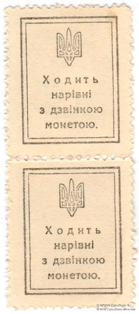 Разменные марки-деньги без даты (1918 г.). СЦЕПКА вертикальная из 2-х марок. Голубой оттенок.
