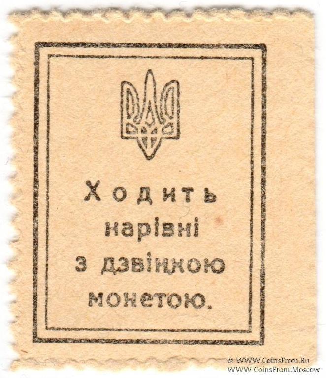 Разменные марки-деньги без даты (1918 г.). Частично без зубцов (слева), край листа.