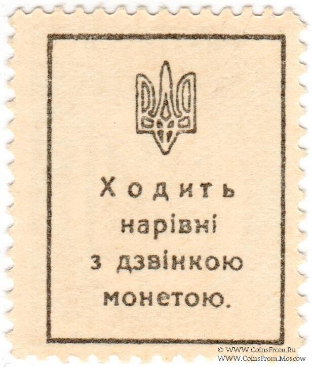 Разменные марки-деньги без даты (1918 г.). Рисунок зеленый расплывчатый, зубцовка четкая.