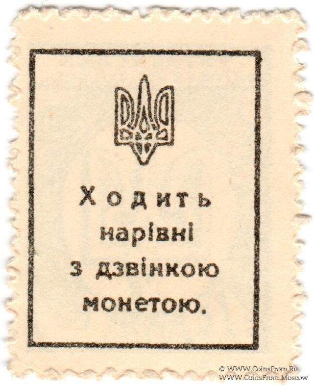 Разменные марки-деньги без даты (1918 г.). Рисунок зеленый четкий, зубцовка нечеткая.