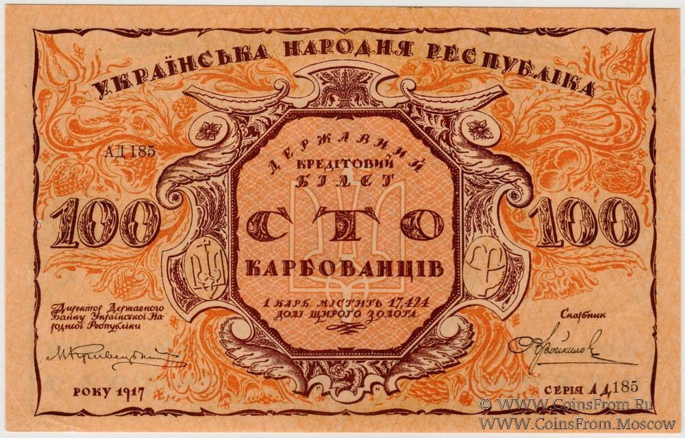 Государственный Кредитный Билет. 100 карбованцев 1917 г.