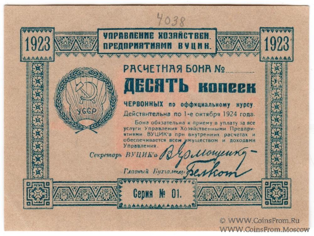 Расчетная бона ВУЦИК 1923 г. Бланк.