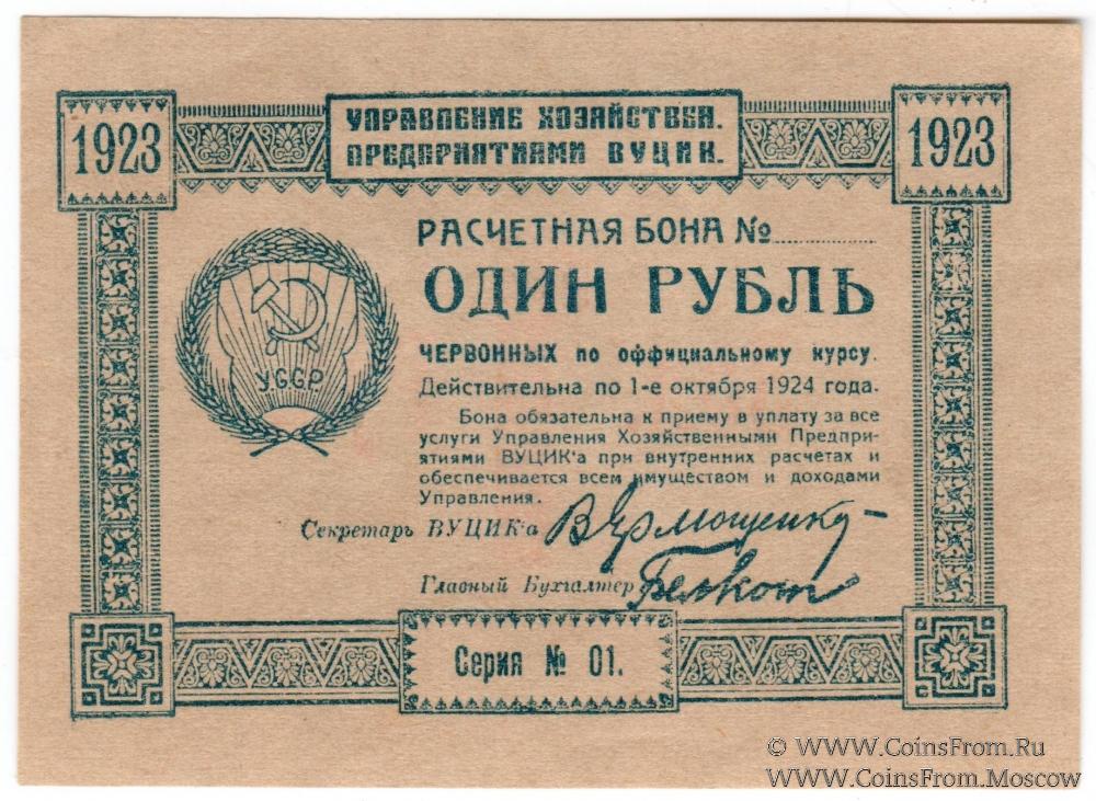 Расчетная бона ВУЦИК 1923 г. Бланк.