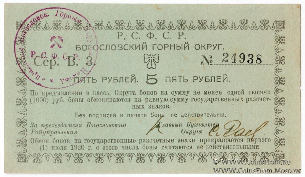 5 рублей 1919 г. (Богословск)