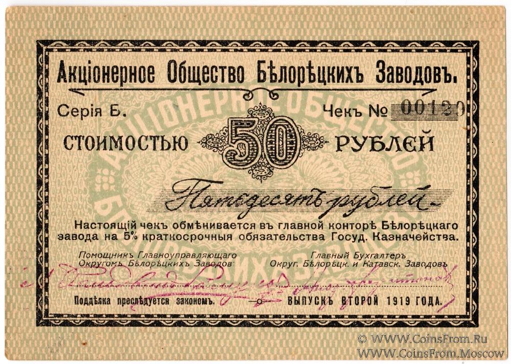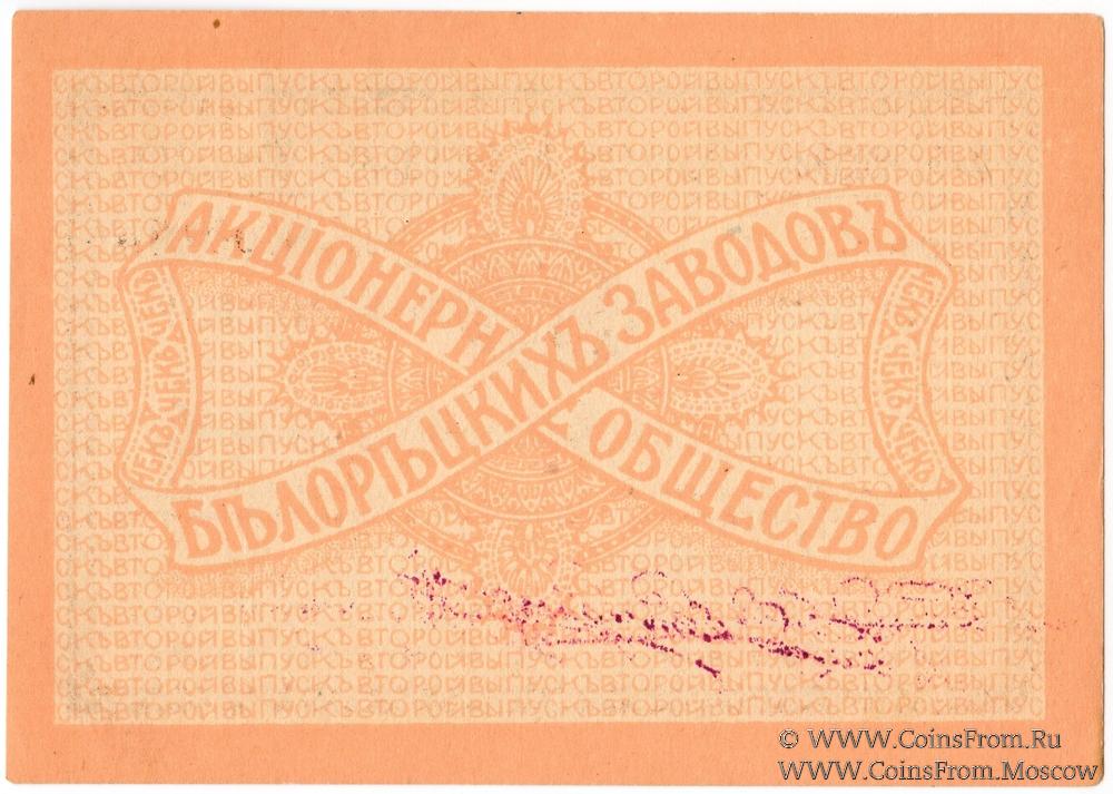 Чек. Выпуск 2. Серия Б. Малый формат. Акционерное Общество Белорецких Заводов.