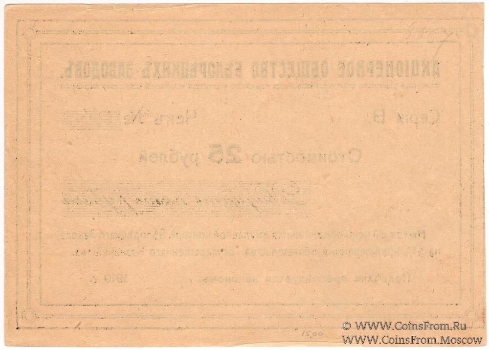 Чек 1919 г. Выпуск 1. Большой формат. Серия В. Печать Правления. Акционерное Общество Белорецких Заводов.