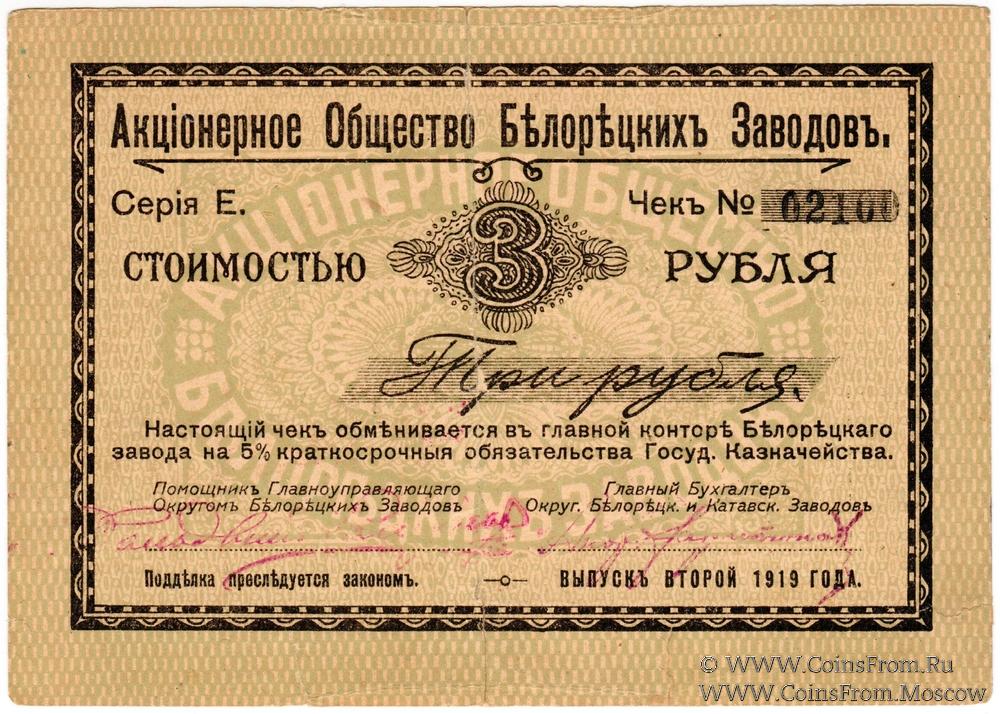 Чек. Выпуск 2. Серия Е. Малый формат. Акционерное Общество Белорецких Заводов.
