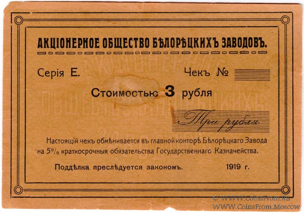 3 рубля 1919 г. (Белорецк)
