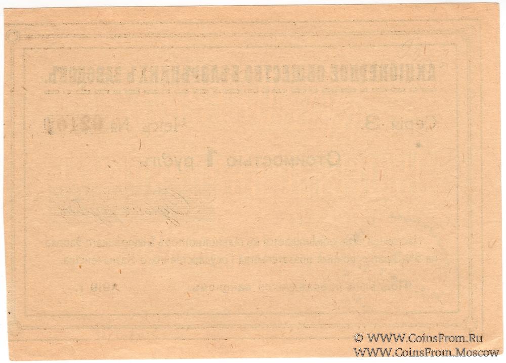 Чек 1919 г. Выпуск 1. Большой формат. Серия З. Печать Правления. Акционерное Общество Белорецких Заводов.