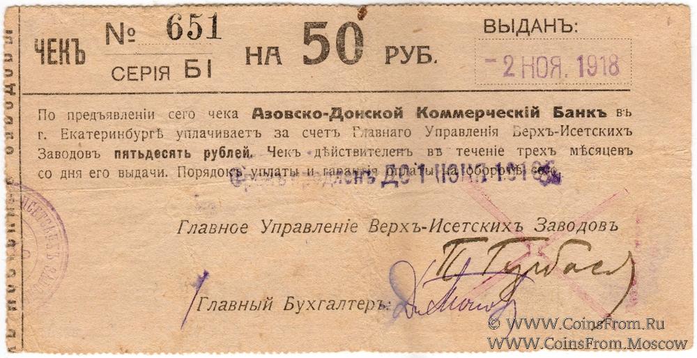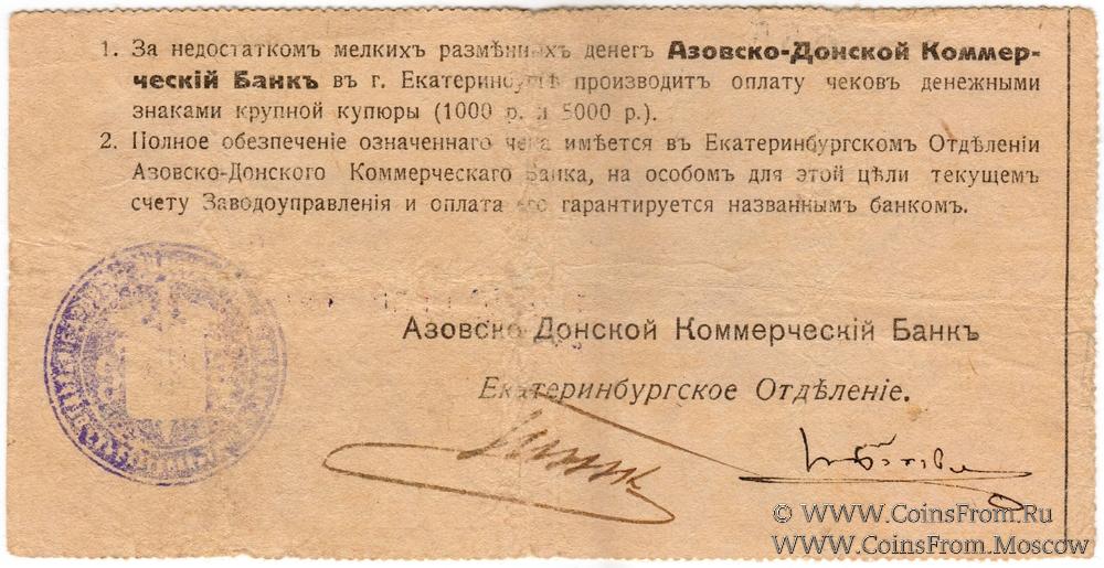 Азовско-Донской Коммерческий Банк (за счет Главного Управления Верх-Исетских заводов).